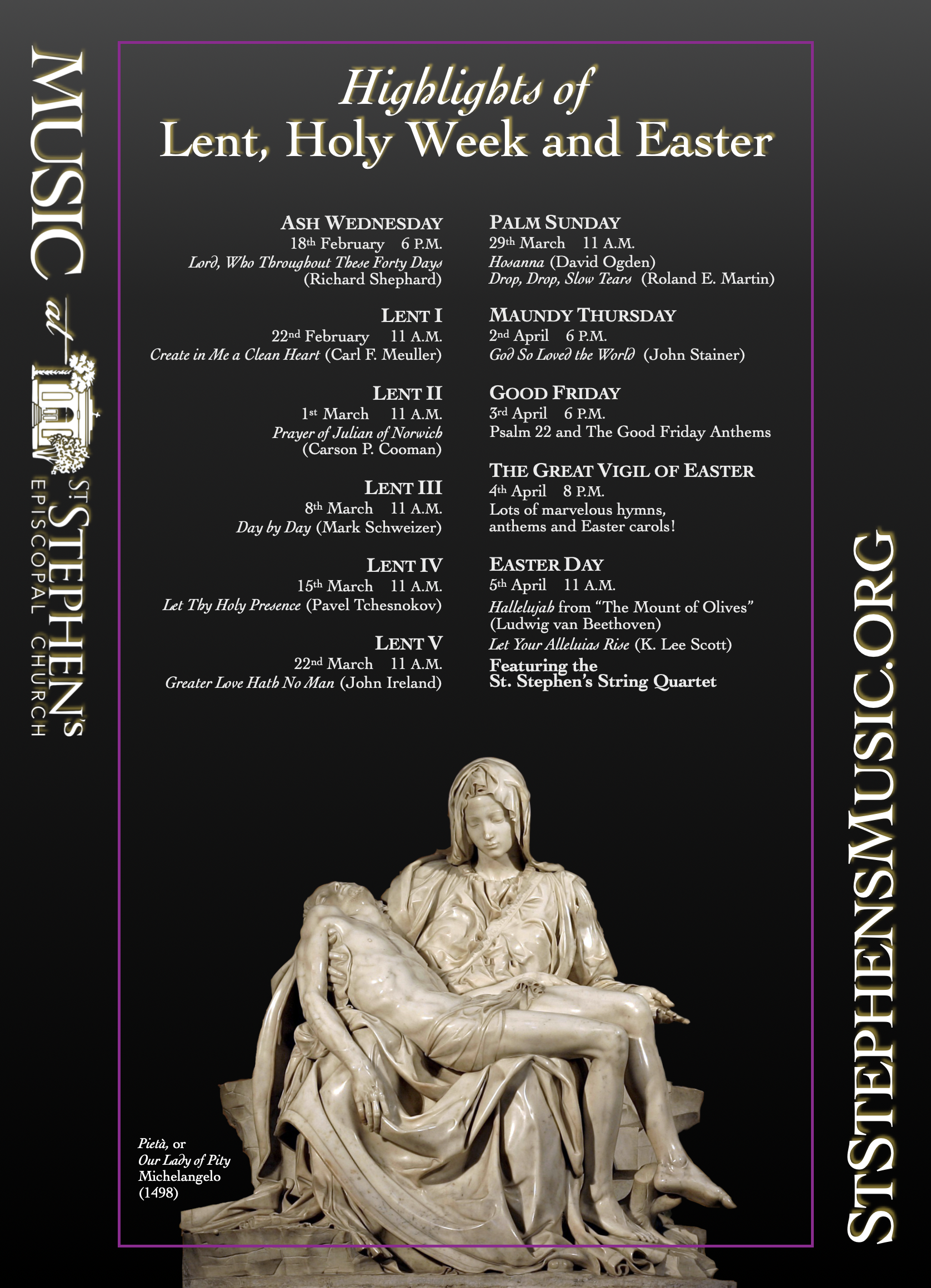 We warmly welcome you to the homepage of Chamber Music at St. Stephen’s and the choir of St. Stephen’s Episcopal Church, located in historic Charleston, South Carolina — where our parish widely known for being “A House of Prayer for All People” becomes “A House of Music for All People.”